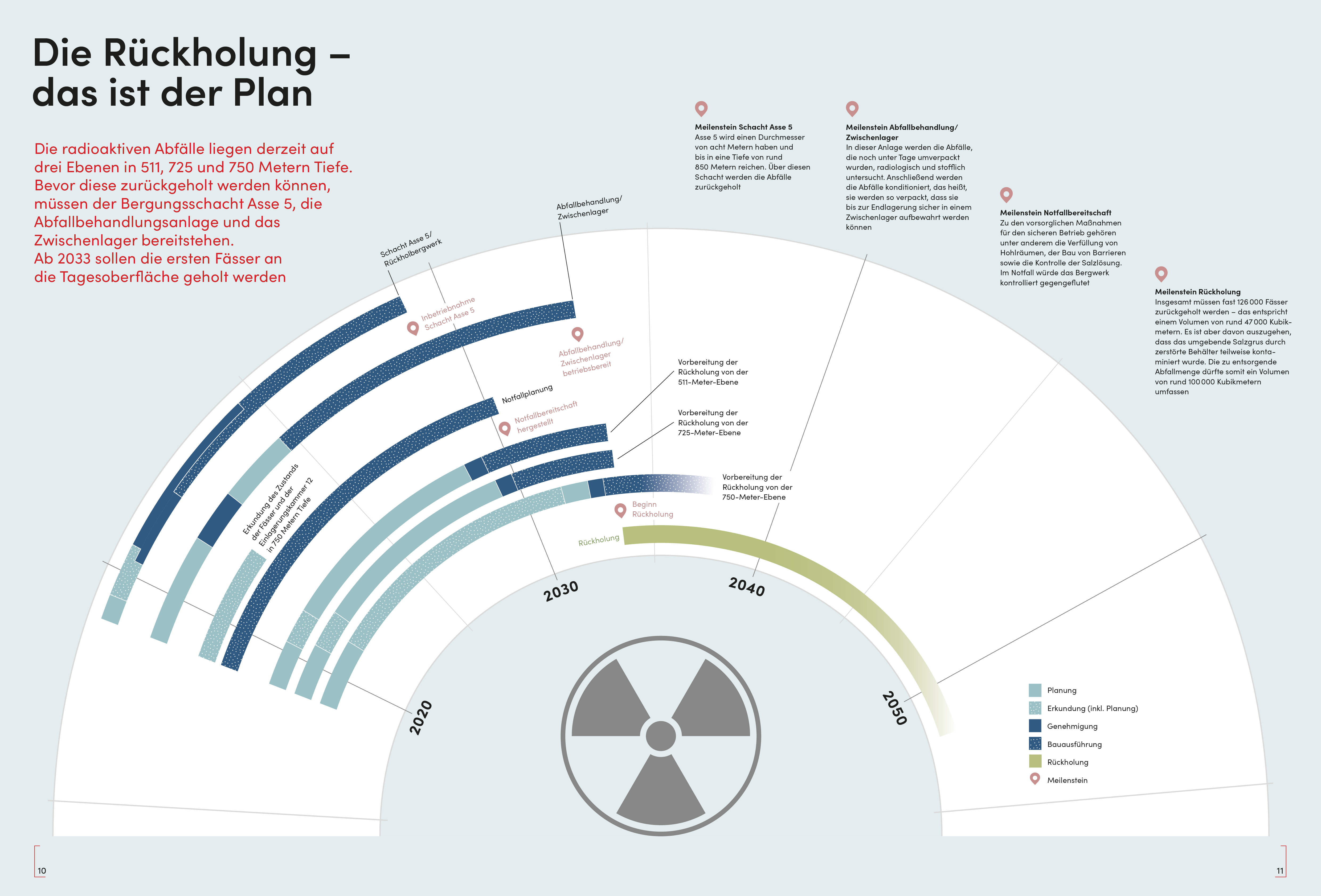 Lautsch: Der Rückholplan macht klar, was wir vorhaben. Natürlich können wir heute noch nicht jedes Detail genau beschreiben. Wichtig ist jedoch, dass wir auch mal einen klaren Anfang formulieren und den Weg beschreiben, den wir bis 2033 gehen wollen. Der Rückholplan ersetzt nicht die detaillierten genehmigungsspezifischen Unterlagen. Er ist aber Grundlage für die Abstimmungen mit den Genehmigungsbehörden sowie mit den Interessenvertretungen in der Region. Auch werden wir den Rückholplan fortschreiben. Wir wollen, dass der Prozess zur Entwicklung des Vorhabens für alle Beteiligten nachvollziehbar dokumentiert ist.